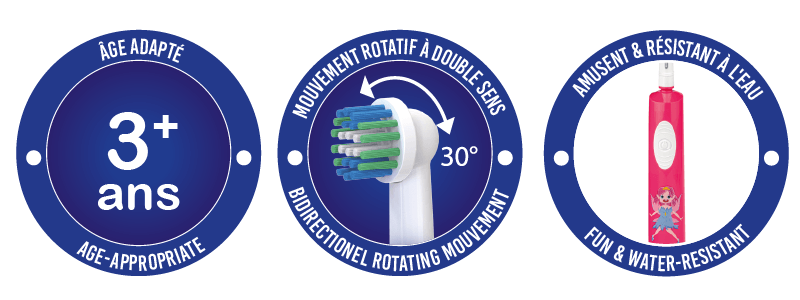 Dotée d’une petite tête rotative équipée de poils extra souples, cette brosse garantit un nettoyage en douceur, adapté aux dents et à la bouche de votre petit prince ou princesse, favorisant ainsi un sourire sain et radieux.