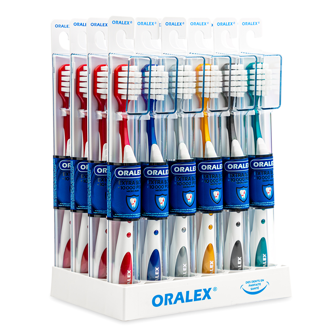 La brosse à dents ORALEX® EXTRA SOFT a été méticuleusement élaborée pour offrir un brossage dentaire efficace tout en prodiguant une attention particulière aux gencives. Dotée d’une tête généreusement dimensionnée abritant une densité élevée de poils extra souples (soit plus de 10 000 poils), cette brosse garantit un nettoyage précis, sans pour autant agresser vos dents ni vos gencives. De plus, son design élégant et sophistiqué ravira les adeptes des brosses à dents au style raffiné.