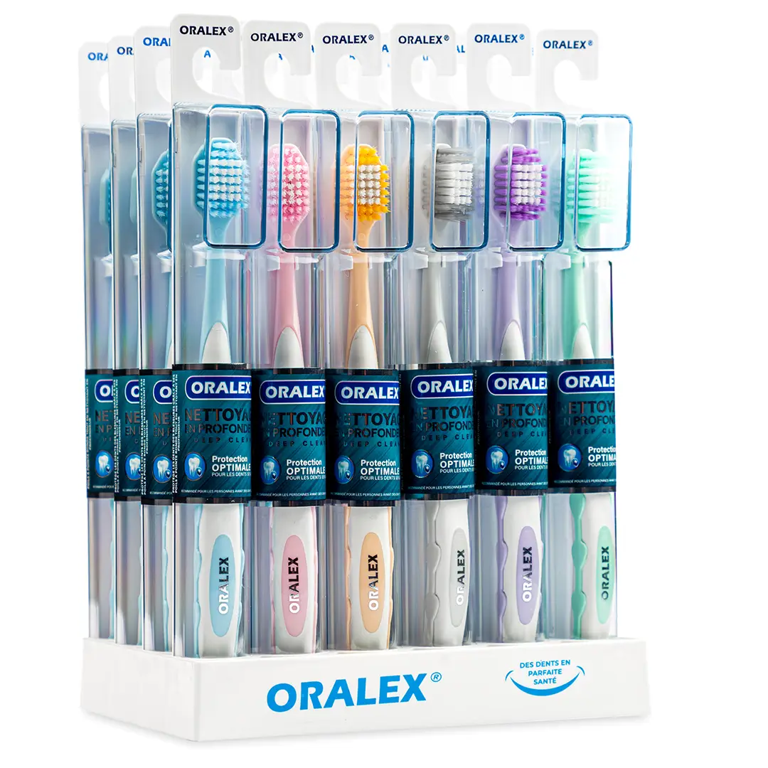 La brosse à dents ORALEX® NETTOYAGE EN PROFONDEUR réinvente l’expérience du brossage. Ses poils extra-fins s’inspirent de l’efficacité du fil dentaire, et leur conception permet un passage aisé entre les dents.