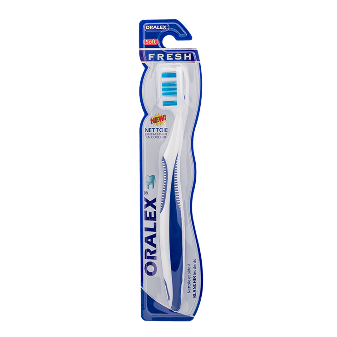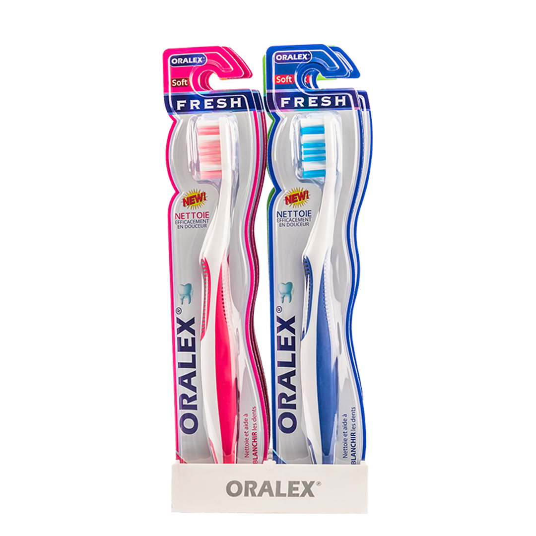 La révolutionnaire brosse à dents Oralex FRESH combine des brins souples, fins et soigneusement arrondis pour offrir un nettoyage des dents à la fois efficace et tout en douceur. Grâce à sa tête élargie et à ses tout nouveaux brins en forme de spirale, cette brosse offre une zone de brossage étendue, permettant ainsi un nettoyage rapide et méticuleux des dents, y compris des espaces interdentaires.
