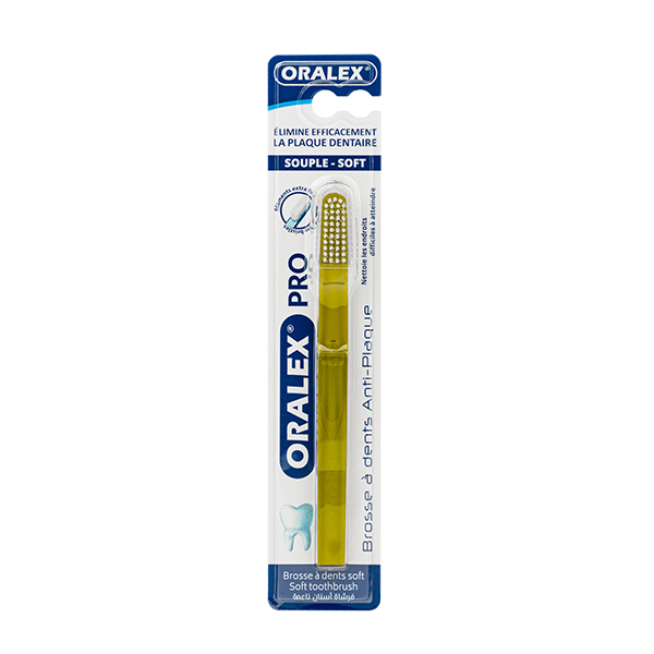 La brosse à dents ORALEX ®️Pro Soft est spécialement conçue pour vous aider à lutter contre la plaque dentaire bactérienne, offrant ainsi une efficacité cinq fois supérieure à une brosse à dents classique pendant le brossage.