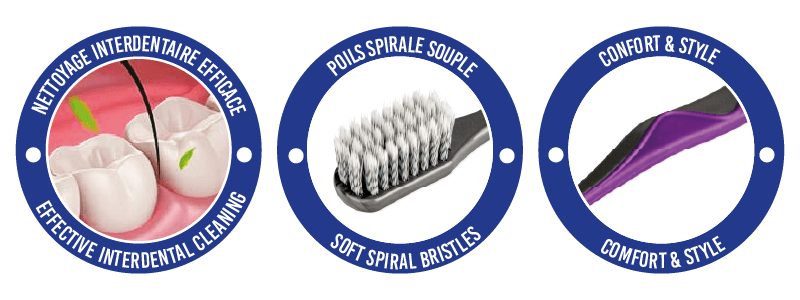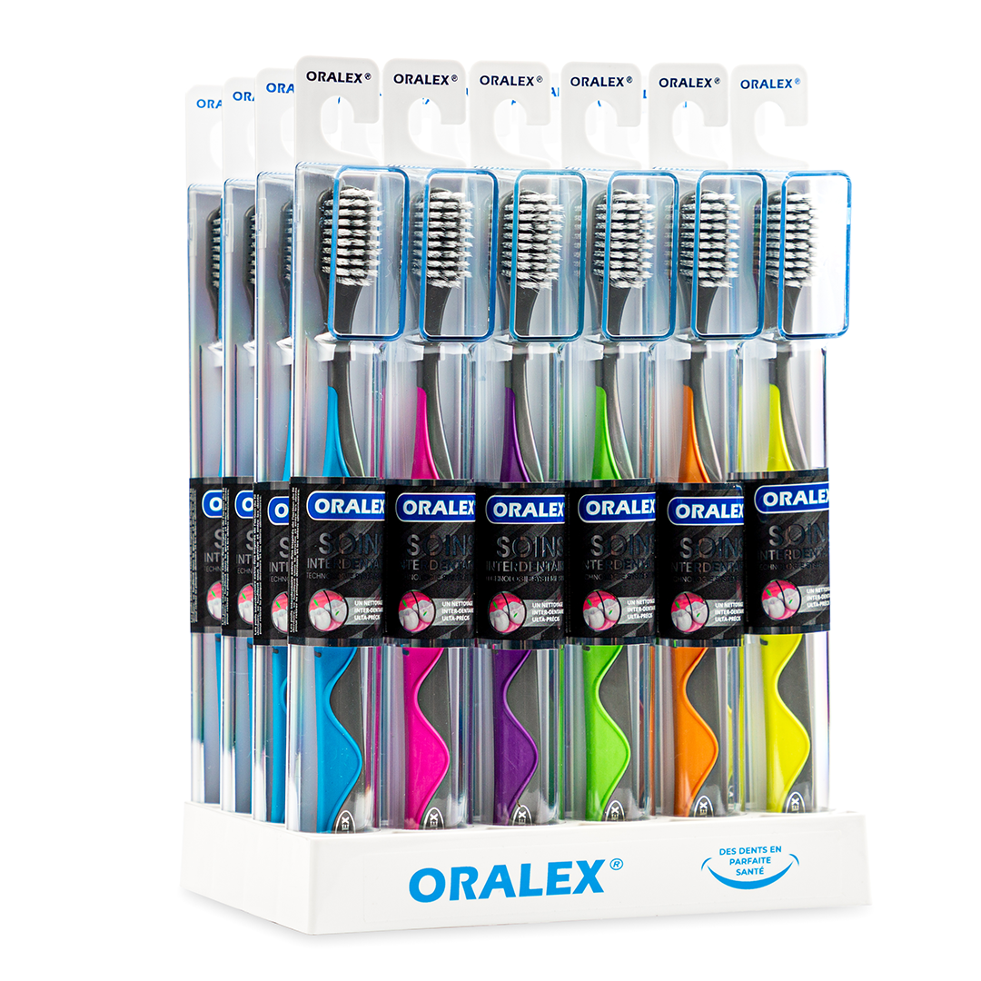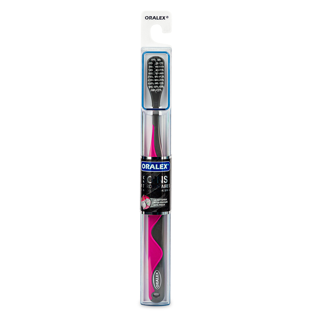 La brosse à dents ORALEX® SOINS INTERDENTAIRES révolutionne votre routine de brossage grâce à ses poils en forme de spirale. Conçus pour minimiser la pression exercée sur vos dents, ces poils sont extra-fins et glissent aisément sous la gencive et entre les espaces interdentaires, délogeant efficacement la plaque dentaire et les débris alimentaires. Cette technologie s’inspire de l’action du fil dentaire, vous offrant une propreté optimale.